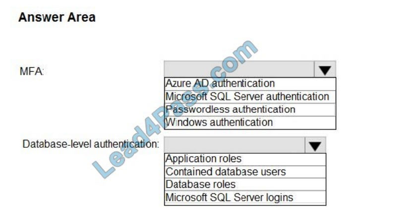 Azure Active Directory Uses contained database users to authenticate identities at the database level.