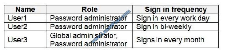 You have an Azure Active Directory (Azure AD) tenant named contoso.com. The tenant contains the users shown in the