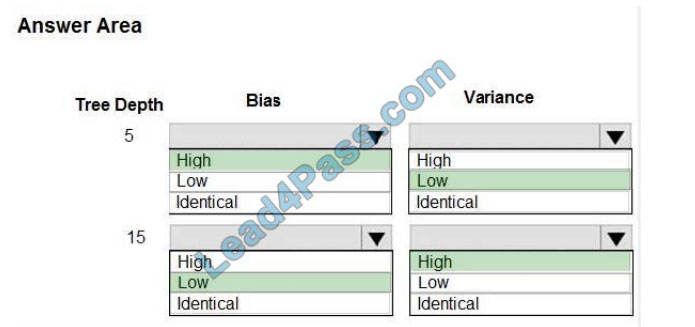 Which properties should you select for each tree depth? To answer, select the appropriate options in the answer area.